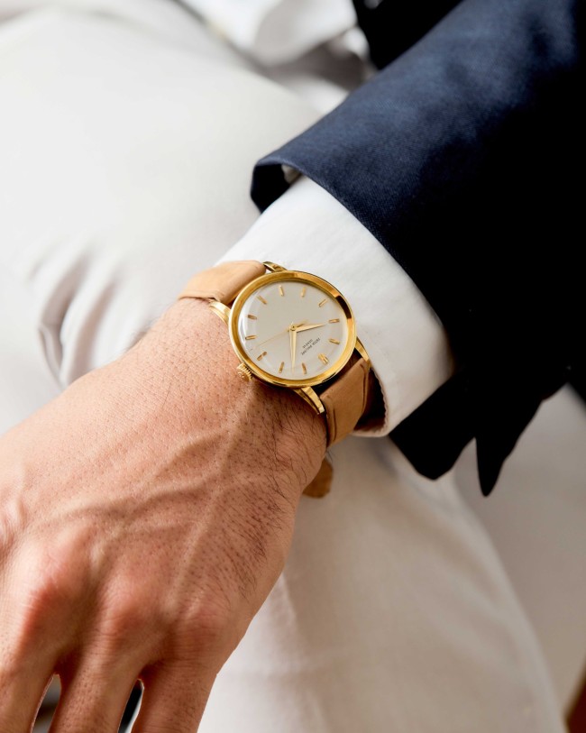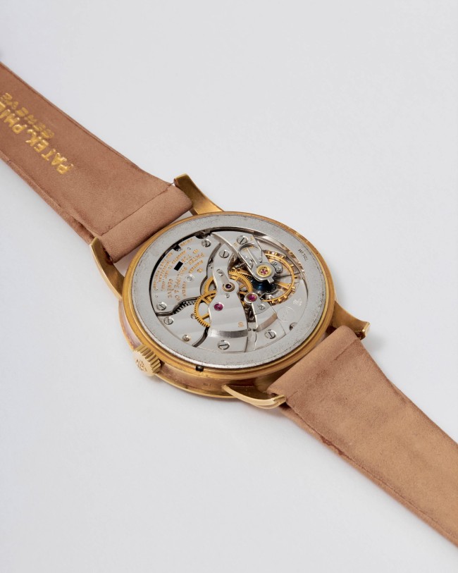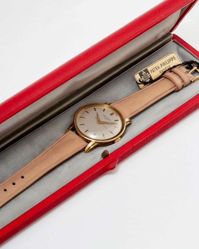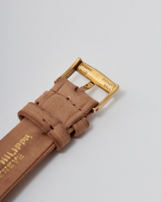 18K gold Patek Philippe Calatrava ref. 2481. This exceptional Calatrava is not only remarkable for its oversized 37 mm case but also for its outstanding, like-new condition. Virtually untouched and likely never worn, it left us speechless at first glance. The watch retains its original Patek Philippe strap with matching 18K gold buckle, the original paper tag, and the original presentation box—an extremely rare and complete set. An Extract from the Archives has also been requested to confirm its provenance. A true collector’s treasure, preserved in time.