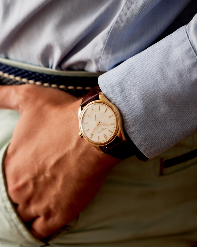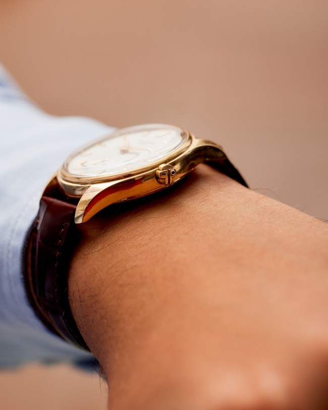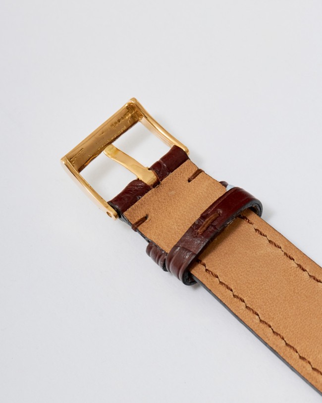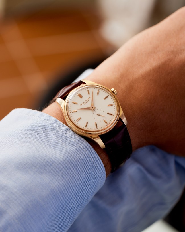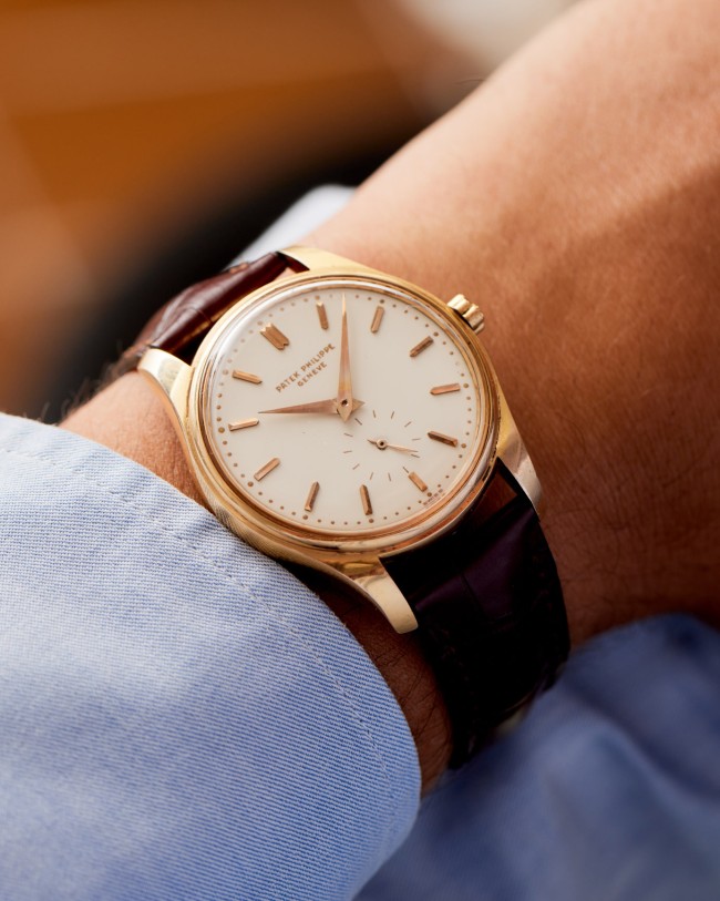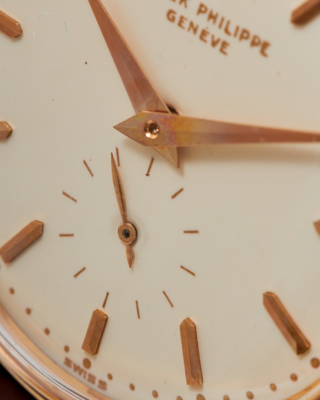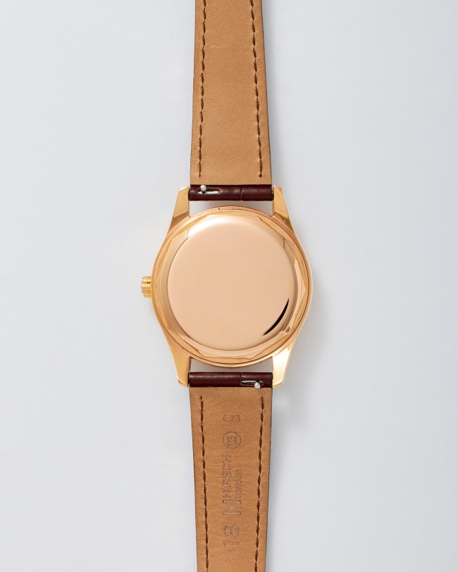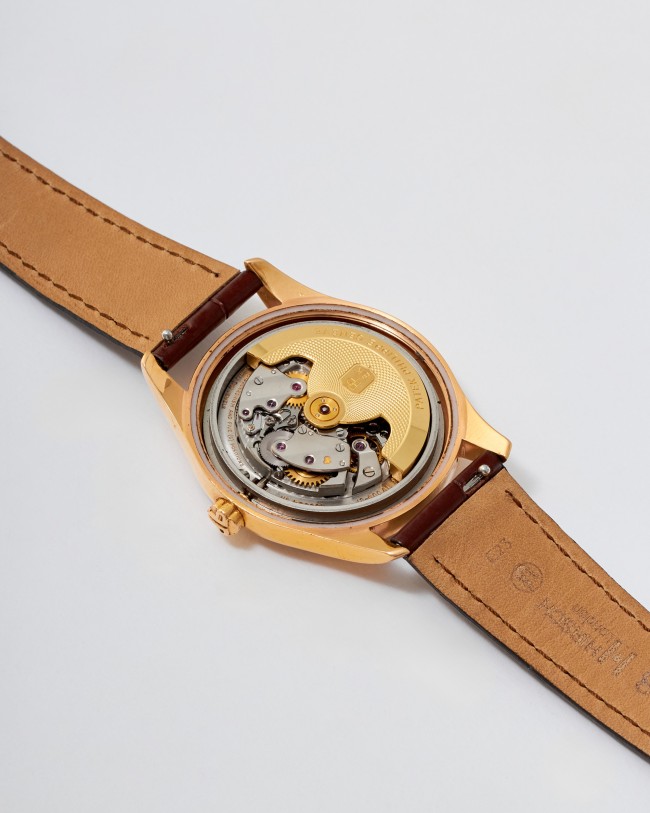 Pink gold Patek Philippe Calatrava from 1960. The ref. 2526 was Patek Philippe's first self-winding wristwatch. This specific watch is in remarkable condition, particularly noteworthy for a piece from 1960. The unpolished case and immaculate porcelain dial make this an exceptionally desirable example for collectors. Powered by self-winding movement Cal 12-600, comes with alligator leather strap, 18K gold buckle and extract from the archives. The extract from the archives indicates that a personal engraving was originally present on the case back and that has been later removed. The pristine state, combined with the rarity of the pink gold case and the historical significance of the model, positions this timepiece as a premier collectible for discerning enthusiasts of fine horology.