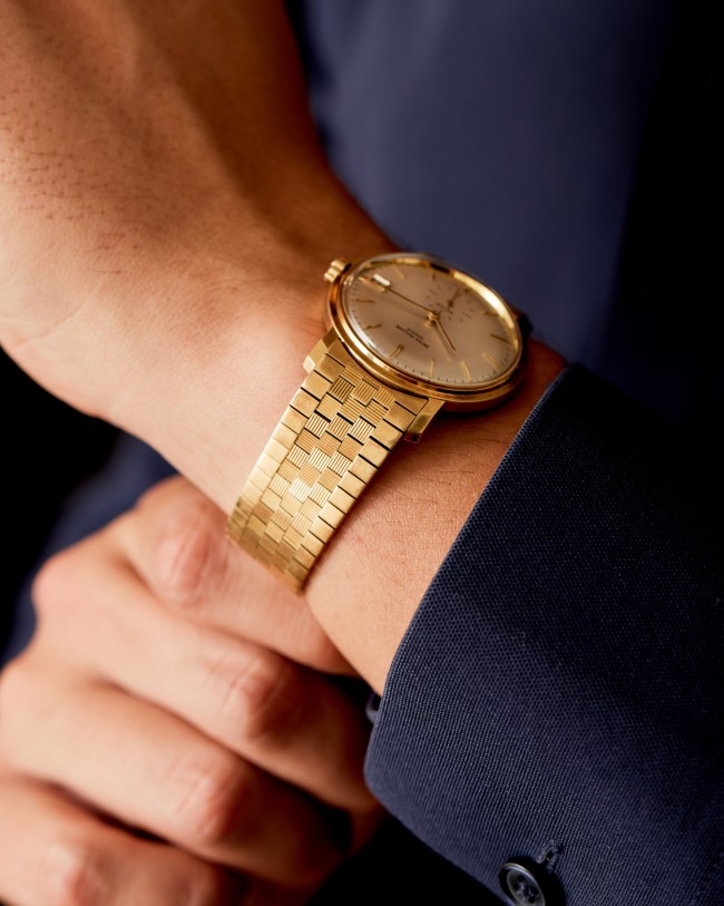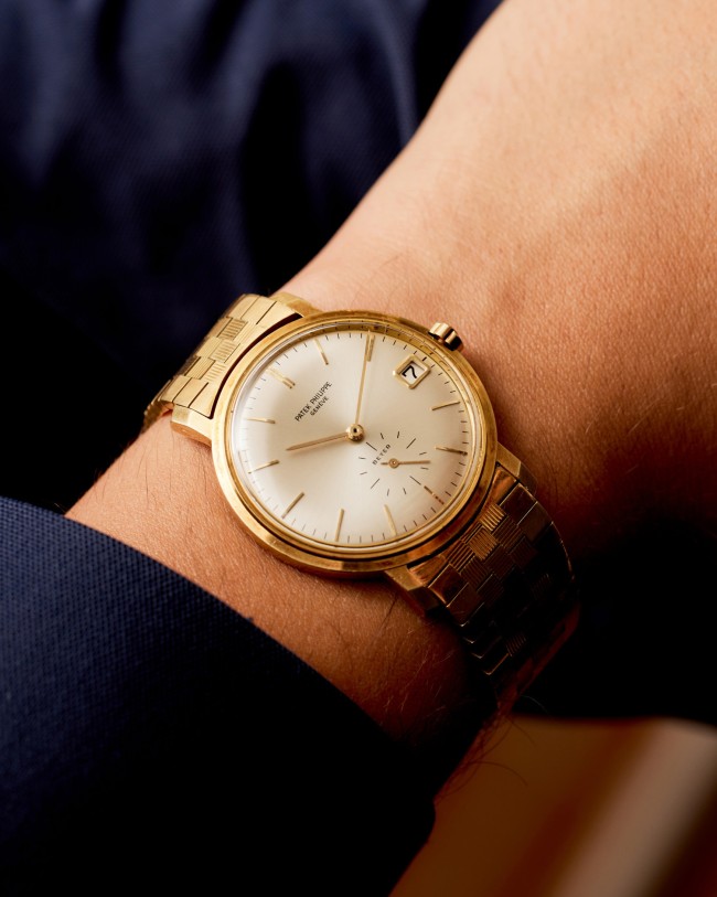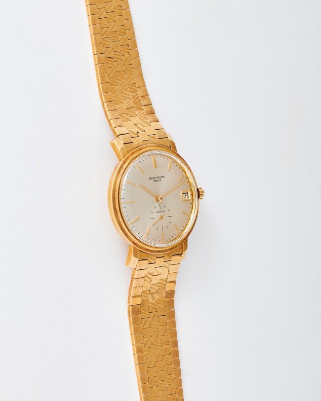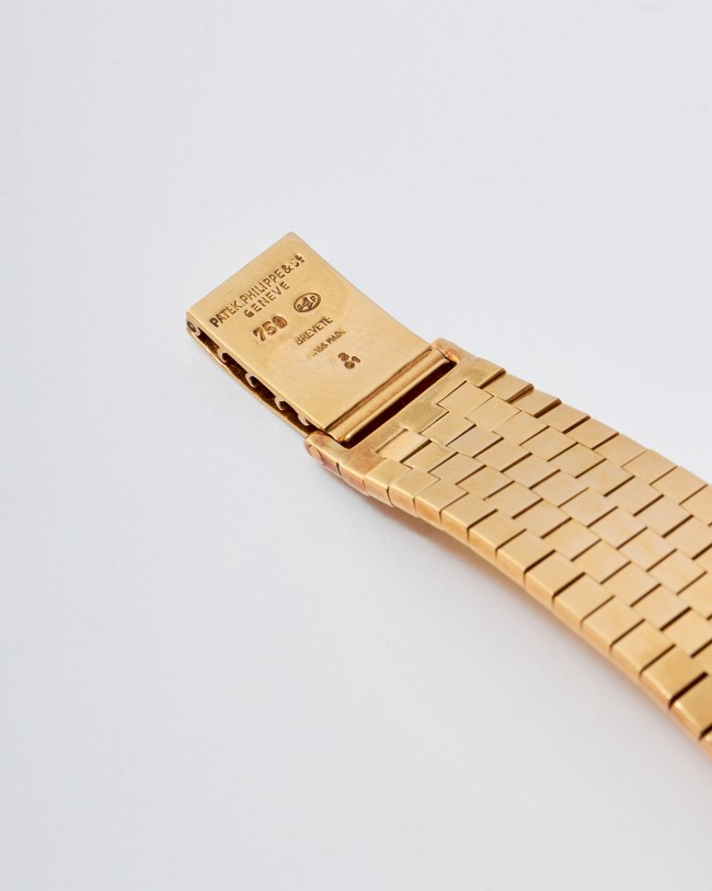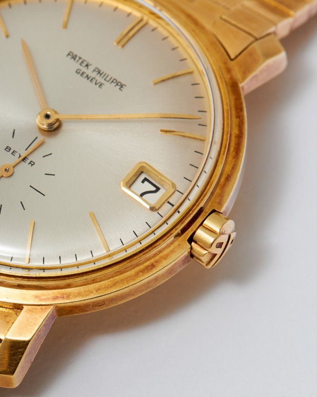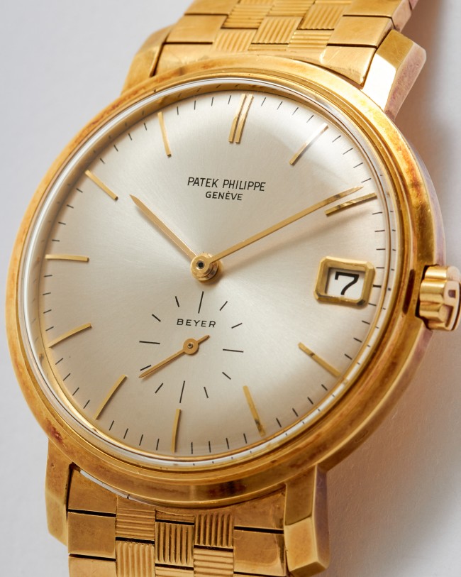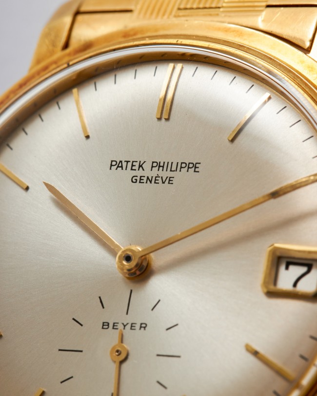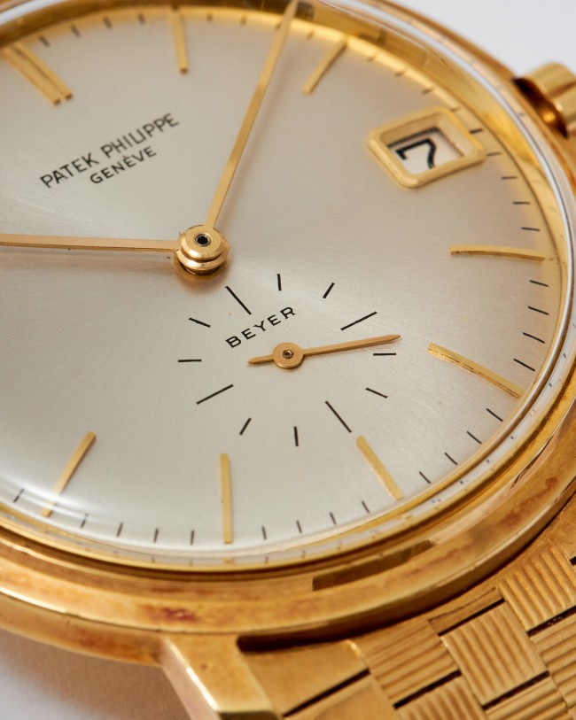 18k gold Patek Philippe Calatrava with bracelet sold by “Beyer”. Amazing condition automatic Calatrava with unpolished case and flawless dial. The dial is double signed by Beyer confirming the watch was sold by the famous Zurich retailer. Although not mentioned in the archive, the watch is fitted with a brick-textured Patek Philippe bracelet which was later purchased by the original owner. Self-winding movement cal. 27-460 and accompanied by Patek Philippe extract of archive, this Calatrava is a true classical masterpiece and an extraordinary addition to any discerning collection.