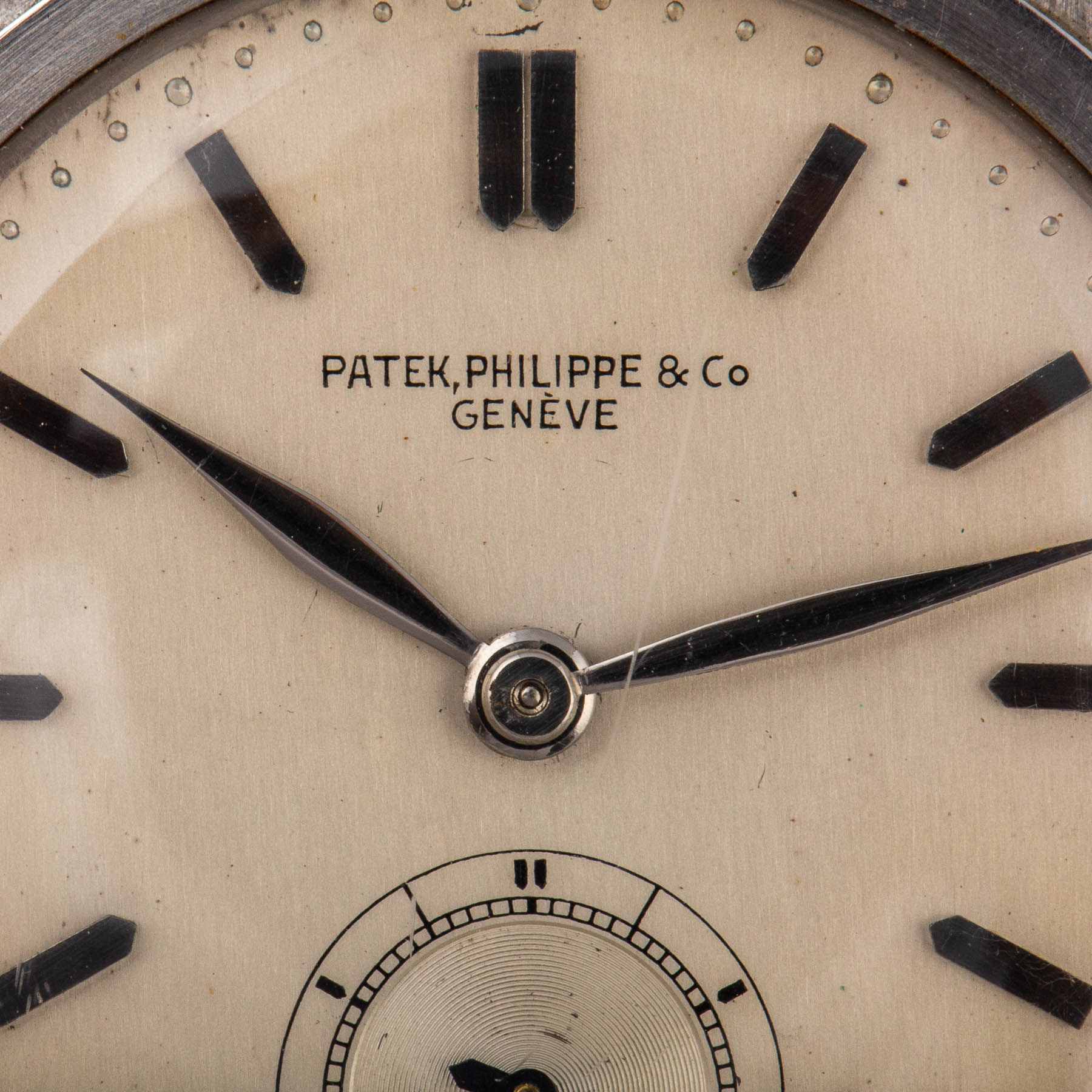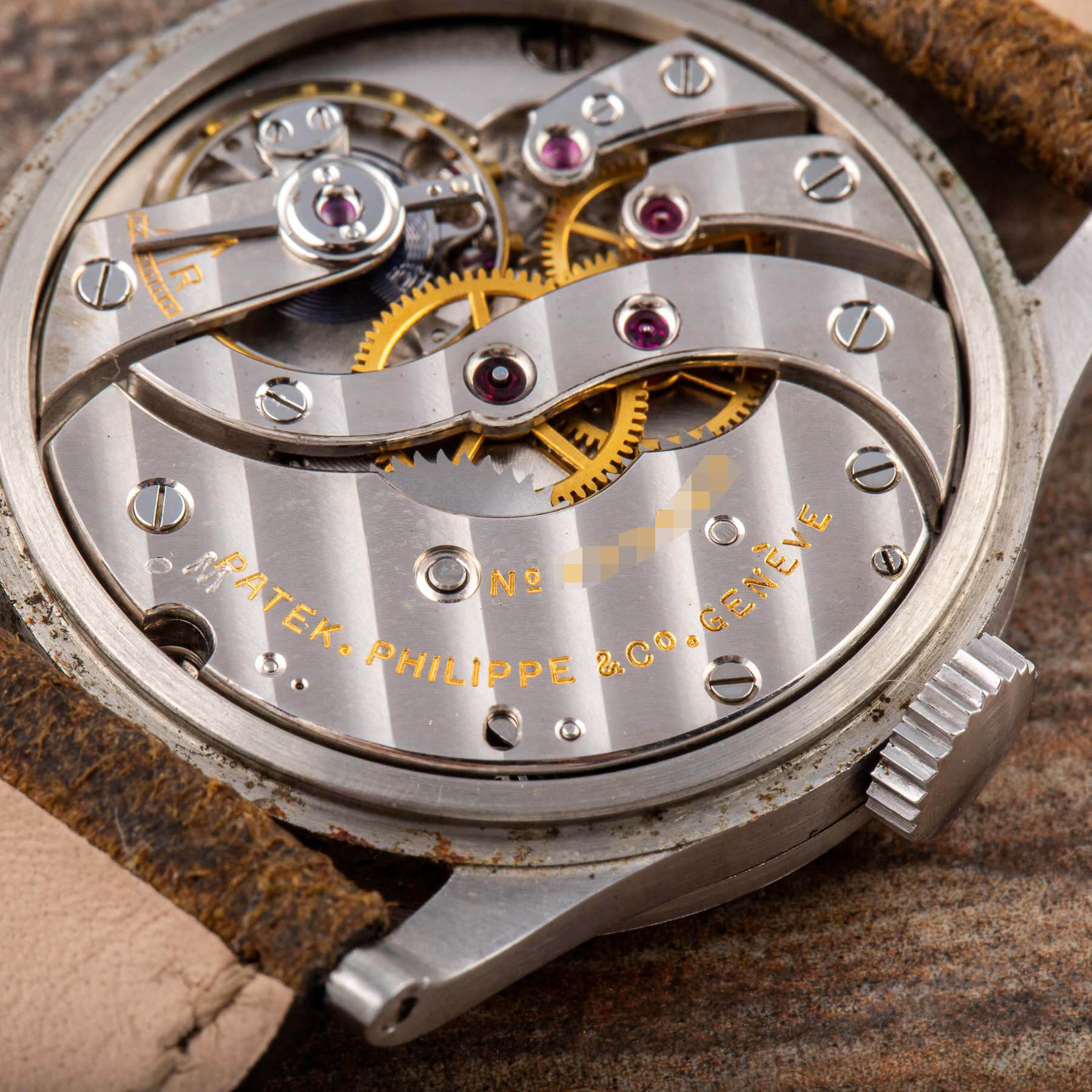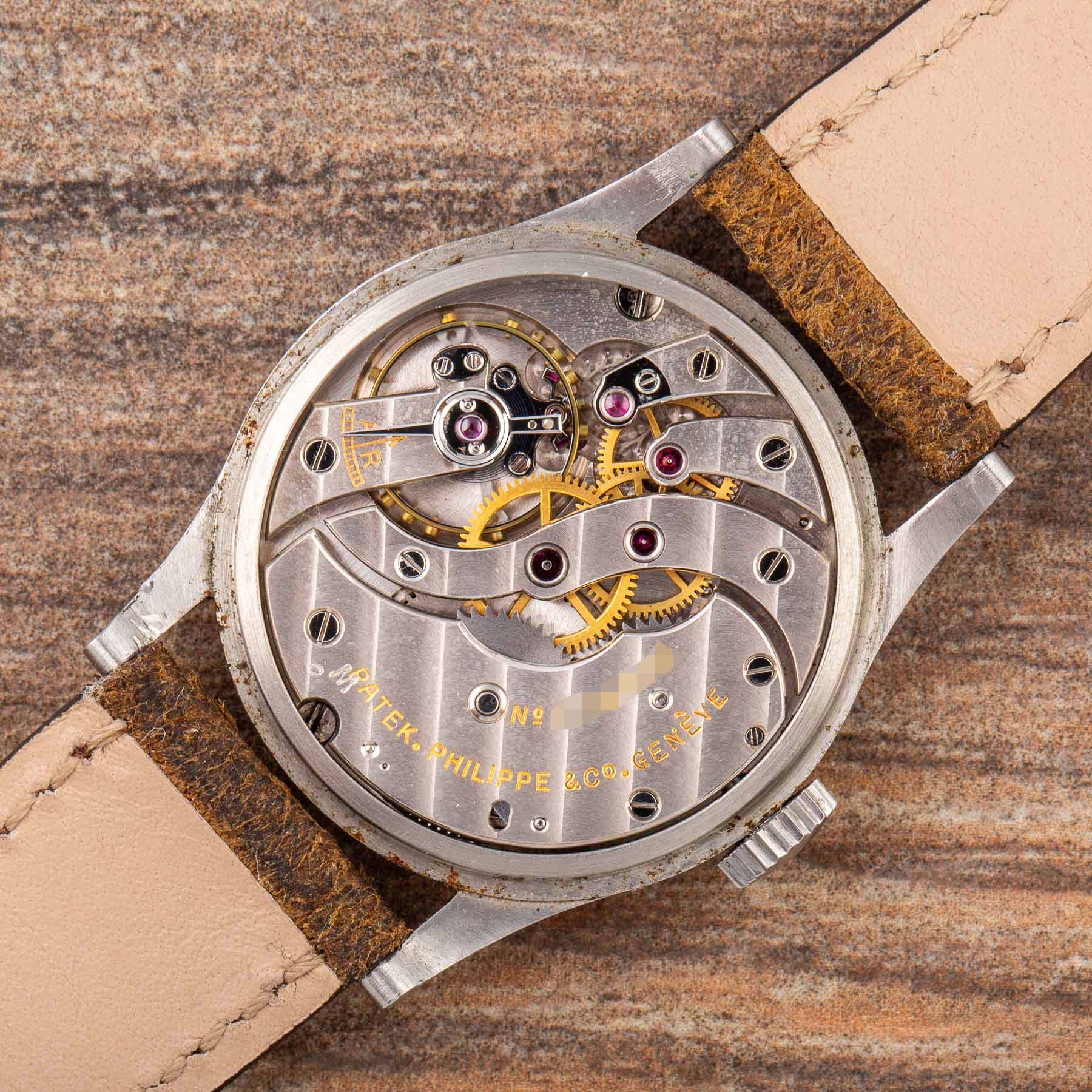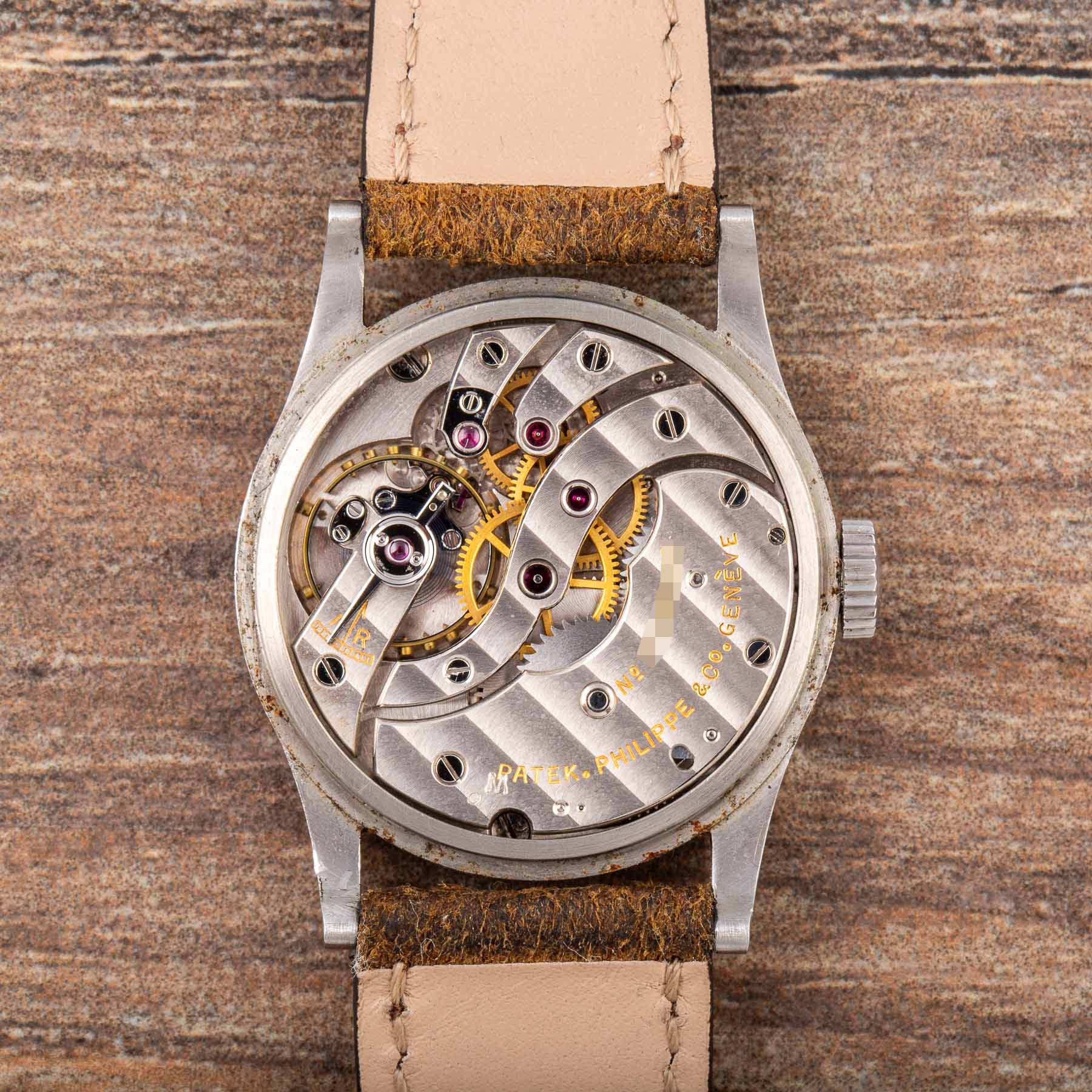 PATEK PHILIPPE CALATRAVA REF. 96 STAINLESS STEEL The Patek Philippe Calatrava Reference 96 is a landmark in the history of wristwatch design. Introduced in 1932, it was one of the first creations under the Stern family's stewardship of Patek Philippe. At a modest 31mm in diameter, the Ref. 96 was small by today’s standards but perfectly proportioned for its time. Its clean lines, slim case, and elegant dial epitomized simplicity. The Ref. 96 was powered by manually wound calibers such as the 12-120 or 12-400. The watch was offered in various metals, including yellow gold, pink gold, white gold, and platinum. The dial designs varied significantly over the years, ranging from simple silver dials to more eccentric sector dials. The Ref. 96 has recently been rediscovered by many watch enthusiasts, both due to the renewed appreciation for smaller watches and for its timeless elegance and significance in Patek Philippe's history. The overall condition of this extremely rare stainless steel Patek Philippe Calatrava Reference 96 is truly exceptional. The case appears to be untouched, still retaining its original factory finishes. It remains sharp, with well-defined lugs and a pristine, untouched flat bezel. The dial shows natural signs of aging, which is entirely expected for a watch of this age. It is most likely untouched and uncleaned, still featuring details such as the accent on "Genève" and the comma between "Patek" and "Philippe"—characteristics that often disappear after dial restoration or cleaning. The caliber is functioning perfectly without any issues. All components are correct for the year of manufacture, including the rare "Fab. Suisse" signed dial, as confirmed by the Extract from the Archives. The strap is not original Patek Philippe and the buckle is in white gold and period correct for the watch. The watch is accompanied by a Patek Philippe extract from the archives stating as date of manufacture 1934 and date of sale 1936. Year 1936, Serial Number, 611,XXX, Diameter 31mm