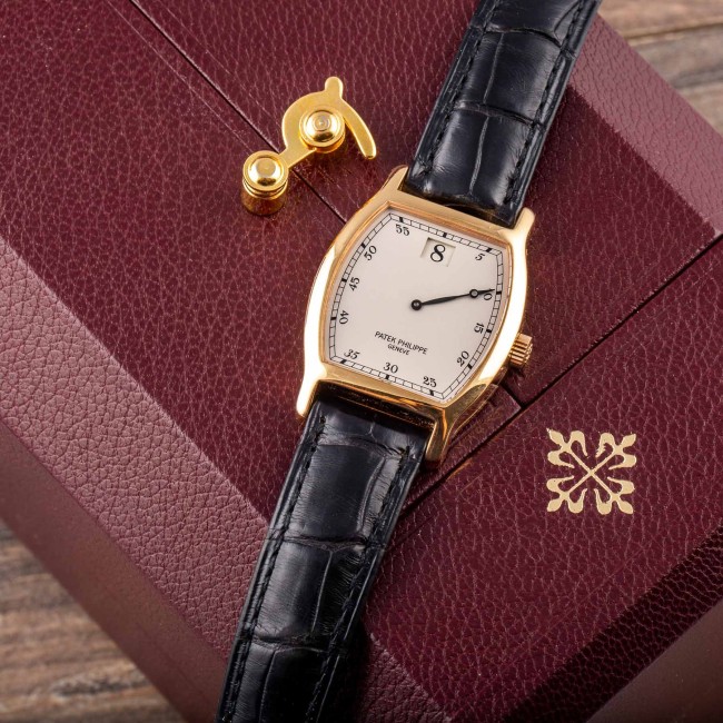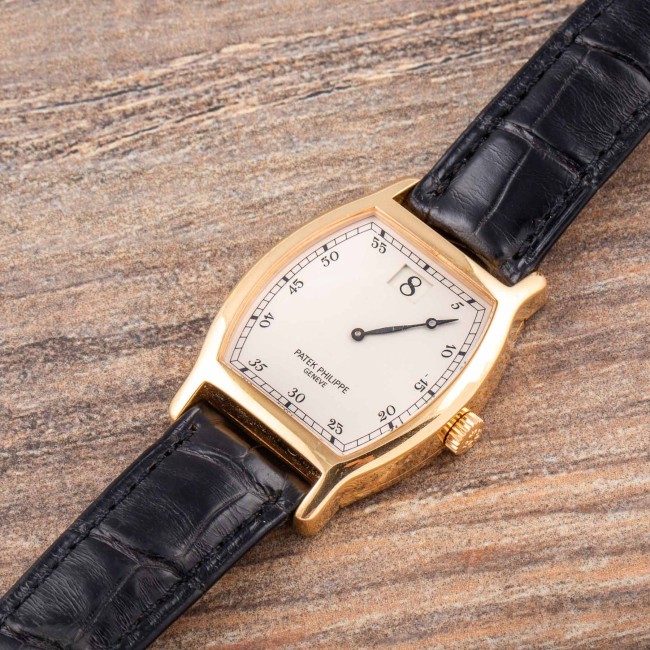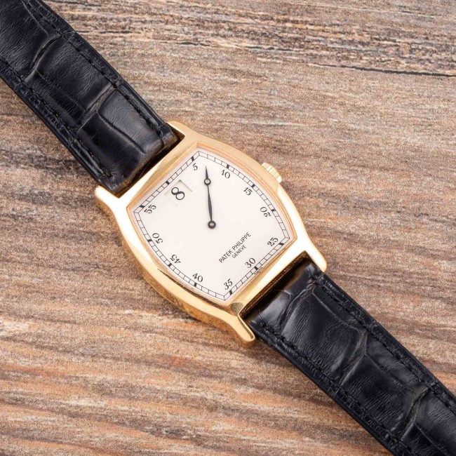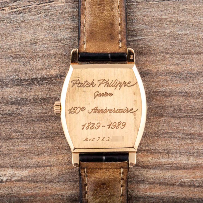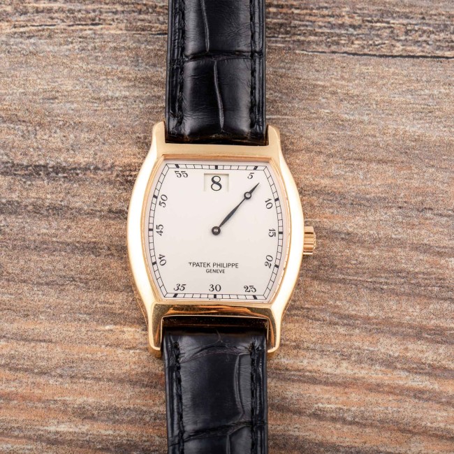 PATEK PHILIPPE JUMPING HOURS REF. 3969 LIMITED EDITION FULL SET The reference 3969 was produced on the occasion of the 150th anniversary of Patek Philippe. It was produced in 1989 in an edition of only 450 pieces in pink gold and is an extremely rare and sought-after watch among collectors. Its main feature is that it is a jumping hour watch, a very prestigious complication in watchmaking. The tonneau-shaped case has a special engraving on the back commemorating the anniversary. Being a limited series, it is quite difficult to find on the market these watches still complete with the original box and papers set and in excellent condition like this one. This Patek Philippe Jumping Hours ref. 3969 is an example in excellent condition. The dial is perfect and flawless, the case is most likely never polished still coming with deep gold stamps and the original factory finishing, the caliber 215 jumping hours works perfectly. The watch comes with original box and warranty. Serial Number 752,XXX, Year 1989.