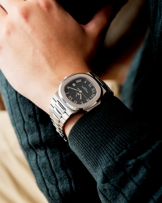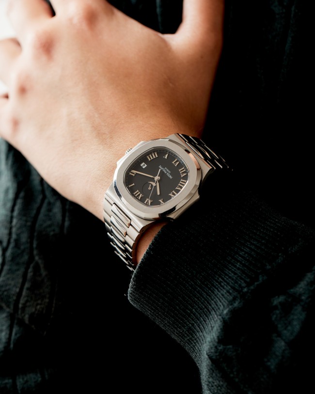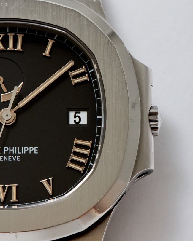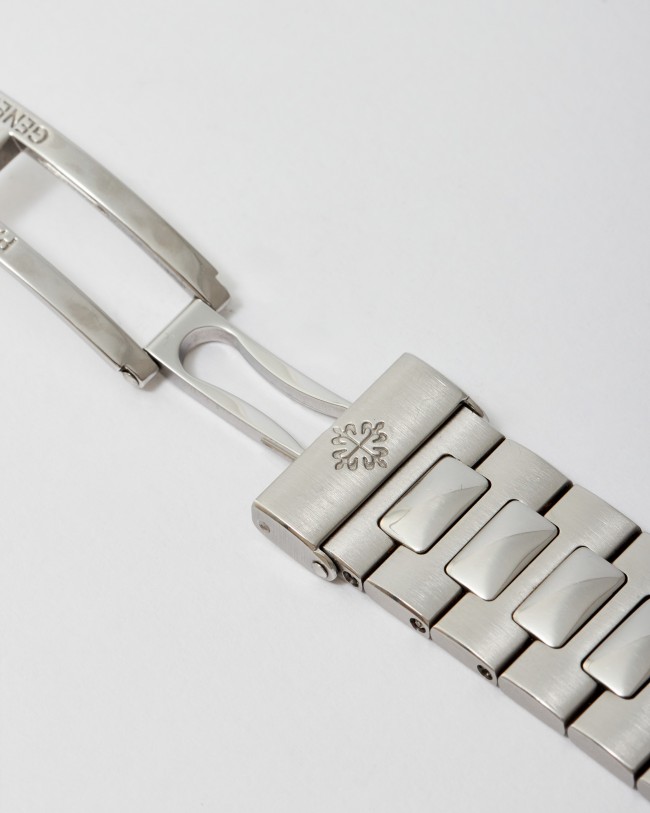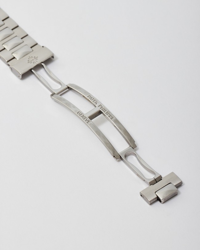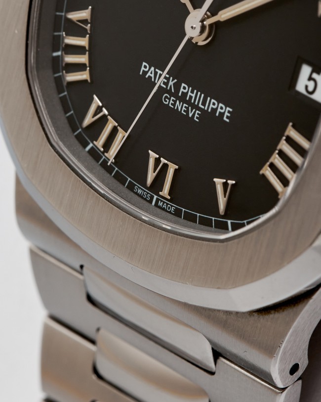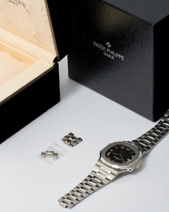 Stainless Steel Patek Philippe Nautilus ref. 3710. This Patek Philippe Nautilus Ref. 3710 is in excellent condition. Although it has been worn, the case remains sharp and unpolished. The bracelet shows minimal signs of use and is very well-preserved, including all additional links. The dial is flawless, with untouched lume. Powered by the self-winding Cal. 330 movement, the watch comes with its original box.
