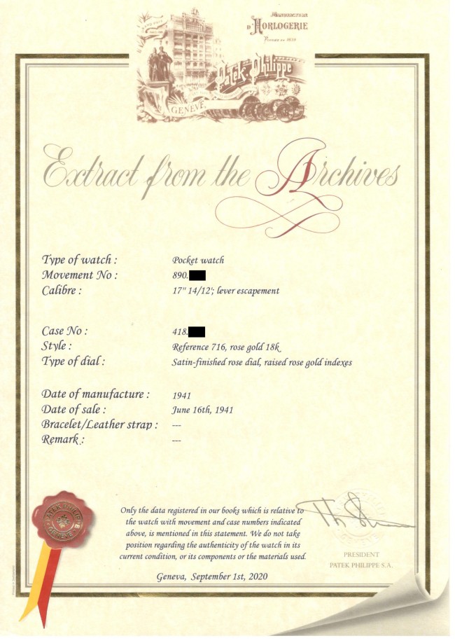 Patek Philippe pocket watch 716 “Hausmann & Co”