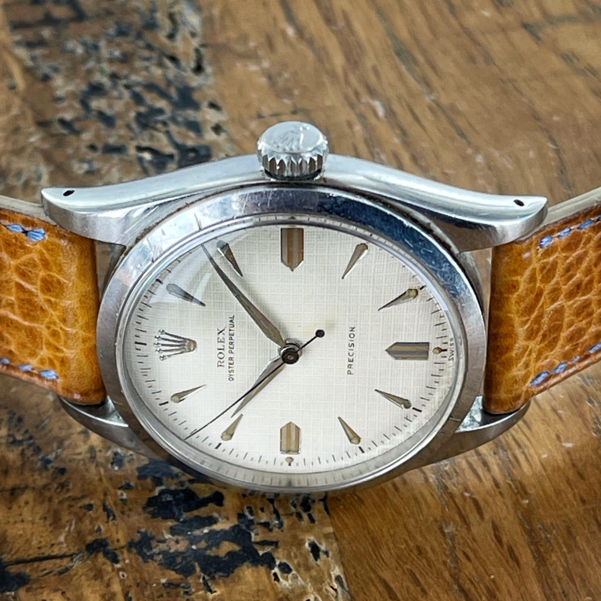 1953 s/steel Rolex Oyster Perpetual ref 6298, linen dial “ovettone”