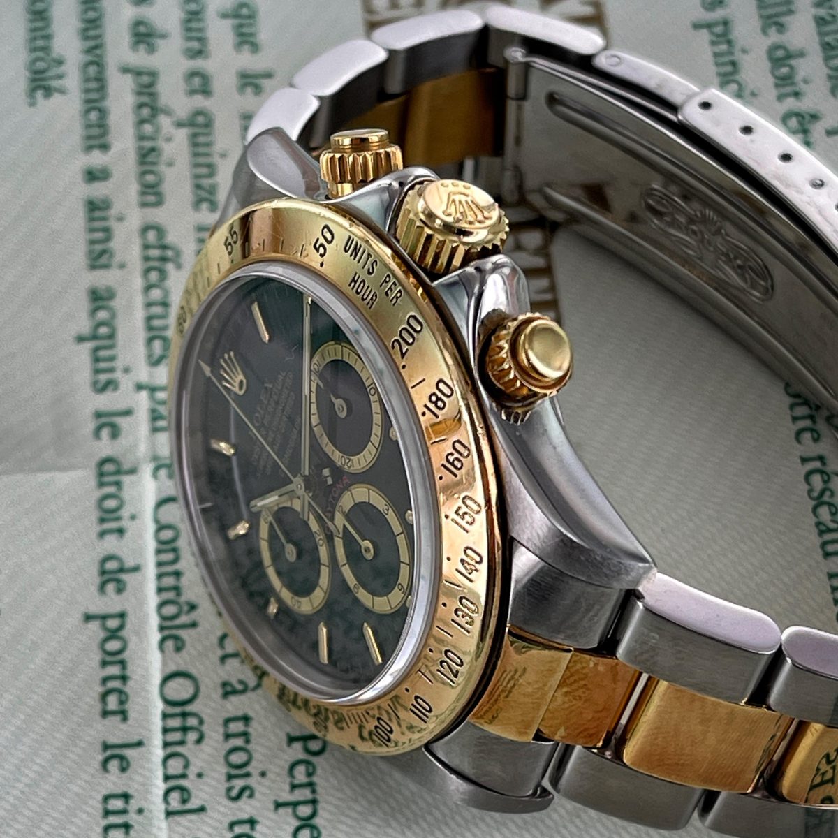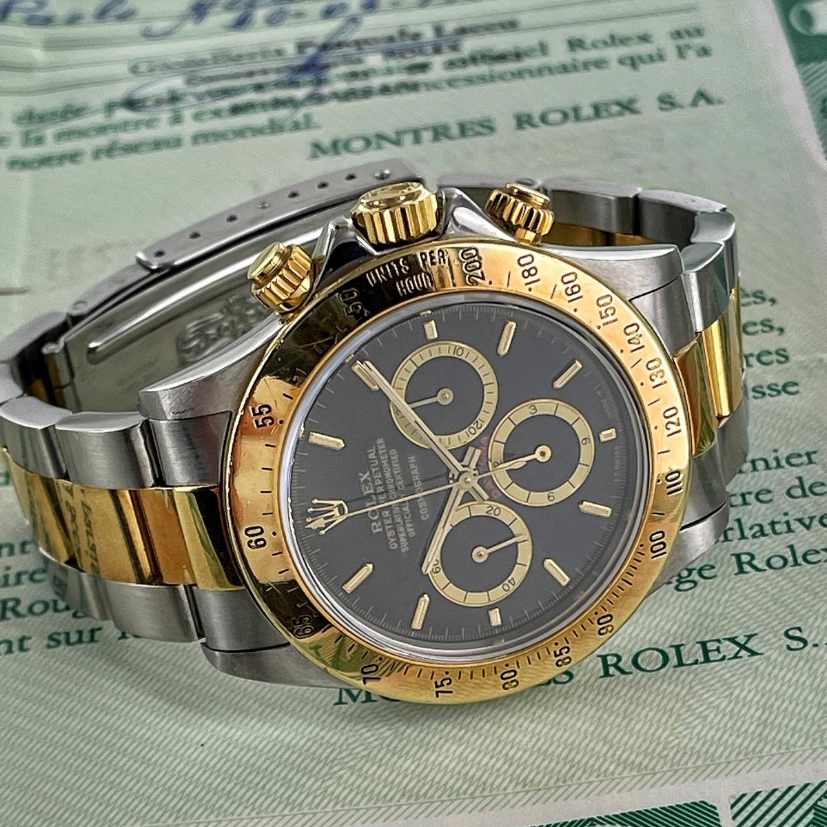 1987 s/gold Rolex Cosmograph Daytona ref 16523, full set, service history, MKI “floating cosmograph” dial, 200 units bezel