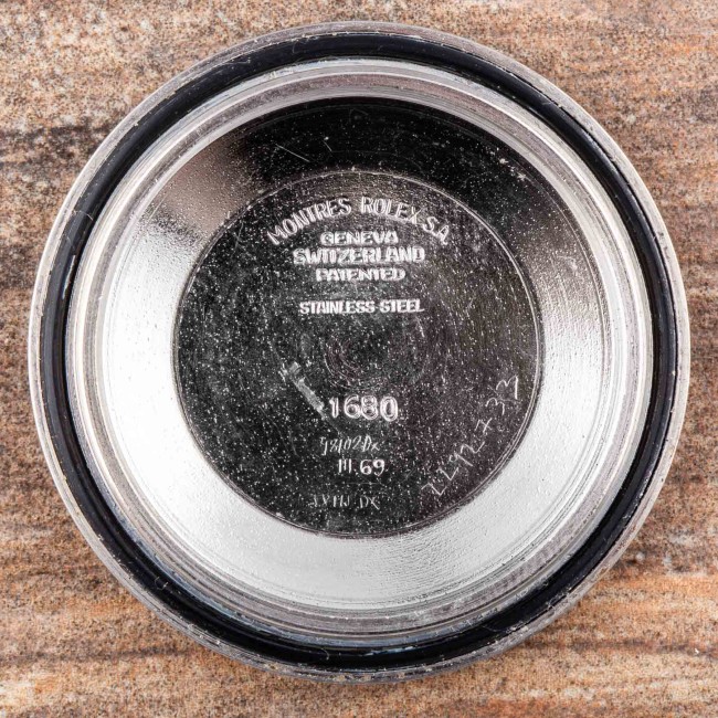 ROLEX SUBMARINER REF. 1680 RED MF MK 2 The Rolex Submariner 1680 was the first Submariner model to feature a date function. It was produced from 1968 to 1976. The main difference between the last and the first series is the famous red lettering on the dial, which can be found only on the first examples manufactured like the one we offer for sale. The specimens coming with this exclusive feature are certainly the most sought-after among collectors of vintage Rolex sport watches. All the components of this 1680 we offer for sale match the production period: Mk2 meter first tritium dial, Mk3 inlay, 1680 III /69 signed caseback, 1570 COSC caliber, Triple lock crown, 9315/280/70 bracelet. Case is in exceptional condition: probably never touched, with sharp lugs. The dial is in mint condition and the tritium markers have taken on a charming yellow patina. A very high quality example of reference 1680, an opportunity not to be missed by the collector looking to add a watch to his vintage Rolex collection. Serial Number 2,292,XXXX, Year 1969.